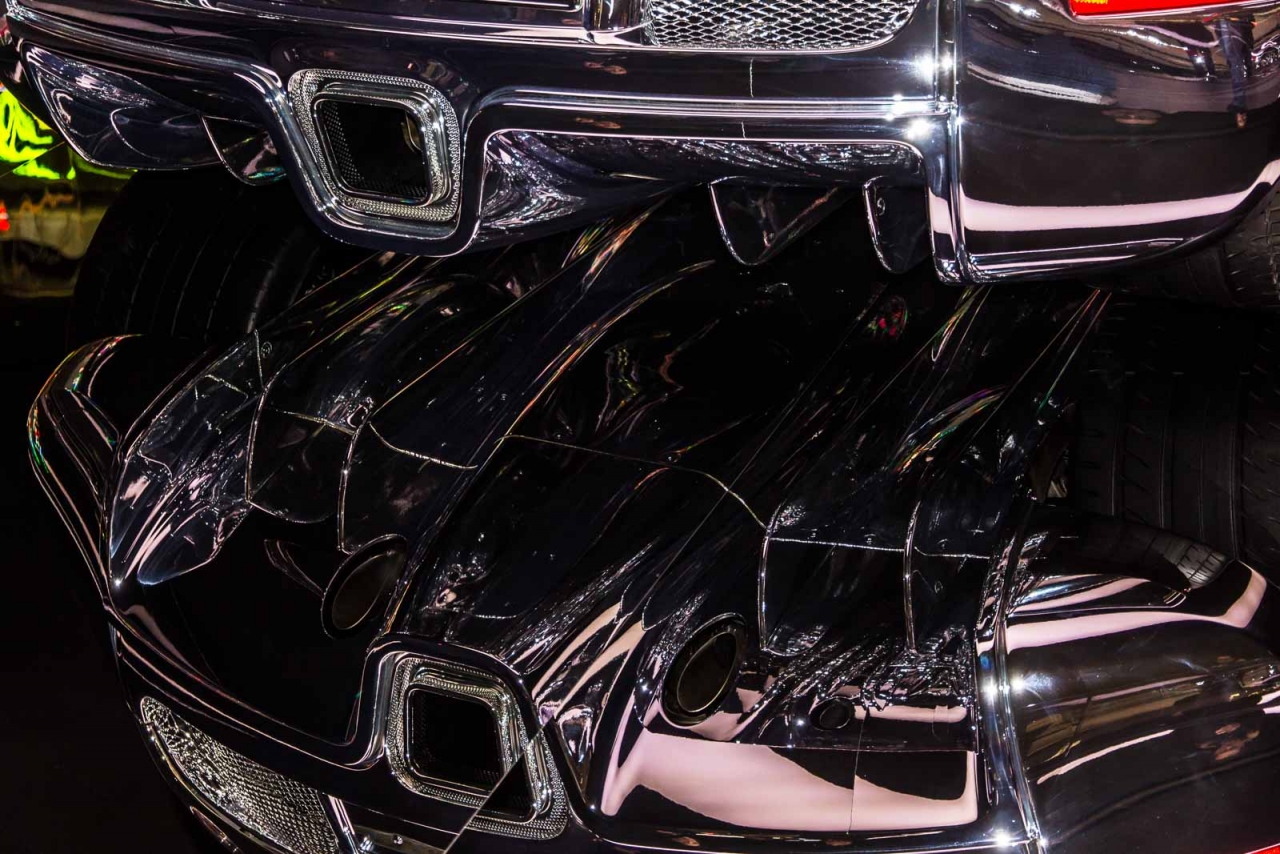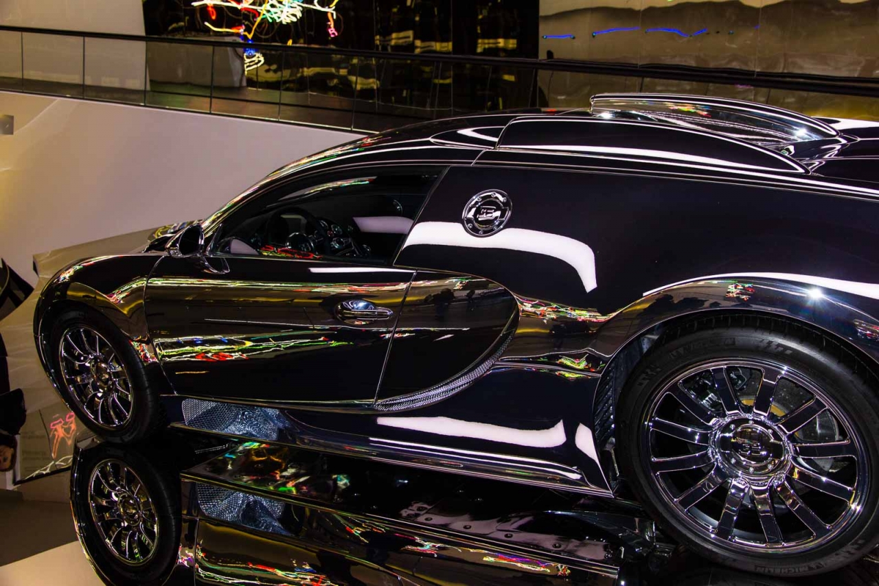 Das Gebäude soll zu einem Perspektivenwechsel einladen: Durch eine geschwungene Wegeführung akzentuierte Stephen Williams den elliptischen Grundriss des Raumes. Für die Installation "Après vous" wurde ein Bugatti Veyron 16.4 verspiegelt und in einen ebenfalls verspiegelten Raum gestellt - so verliert sich das eine Million Euro teure Edelmobil im Unendlichen.