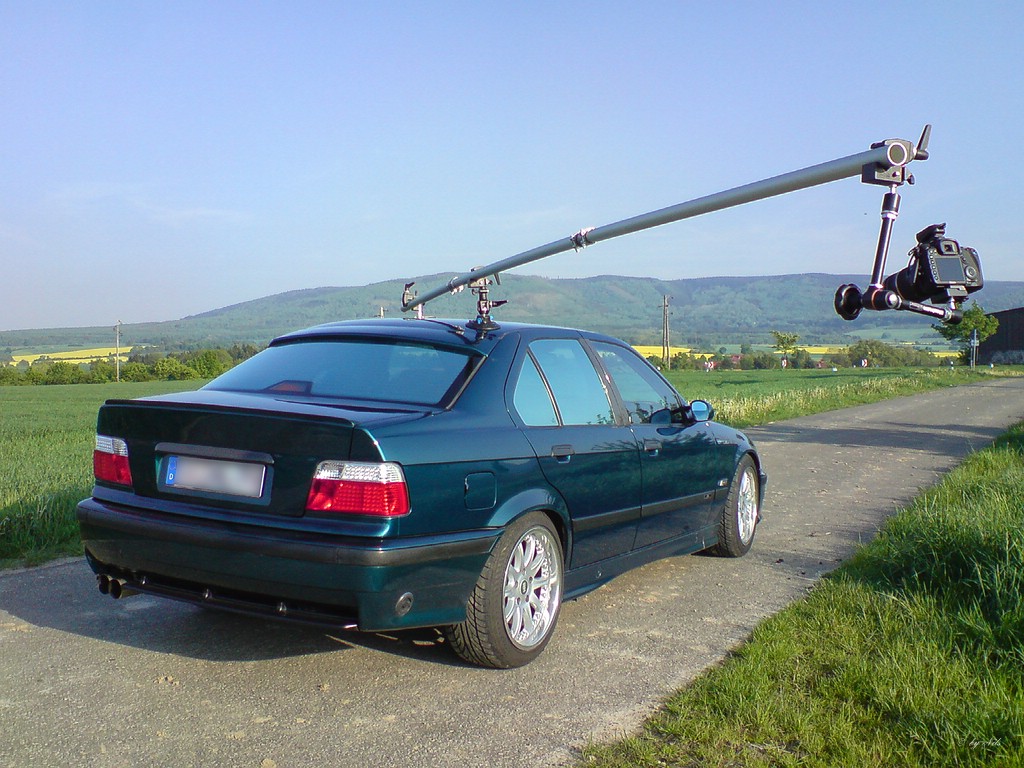 Gemacht wird das entweder aus nem anderen fahrenden Auto aus (also man braucht 3 Leute, 2 Fahrer und einen Fotografen) oder so wie hier: