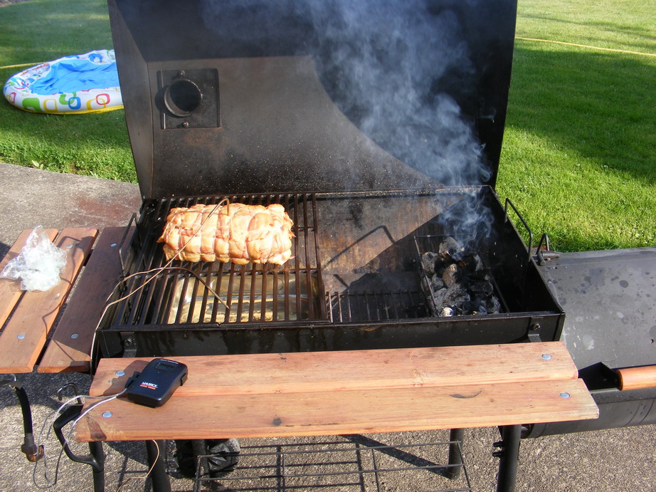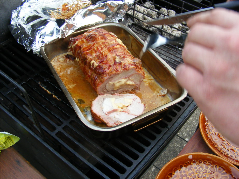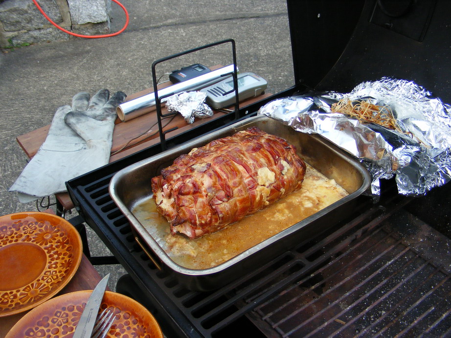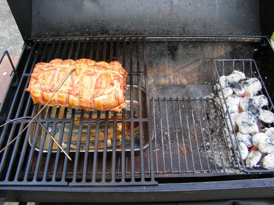 Habe gestern mal wieder meinen Grill angeworfen....es gab diesmal Schweinelachsrollbraten im Bauchspeckmantel.