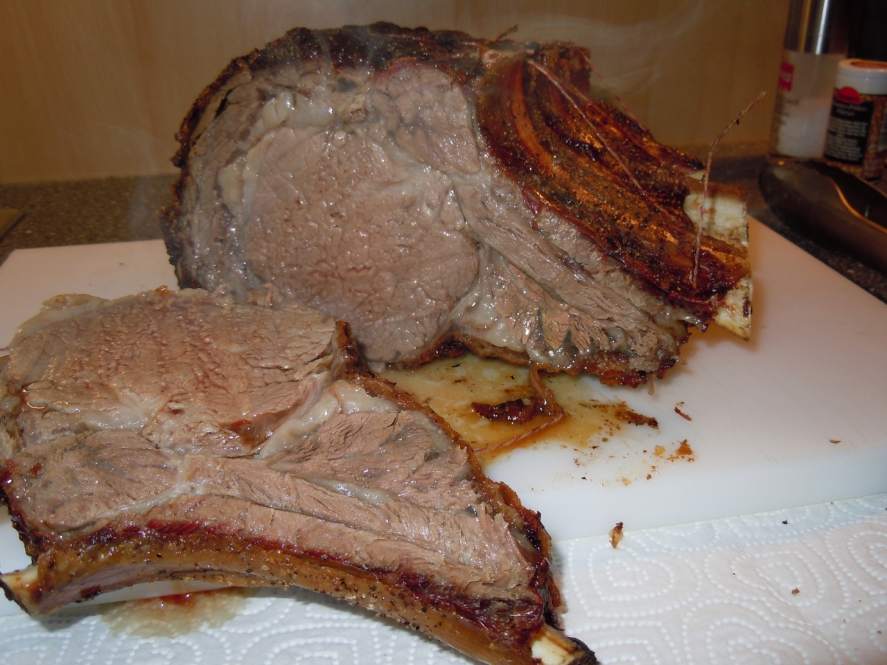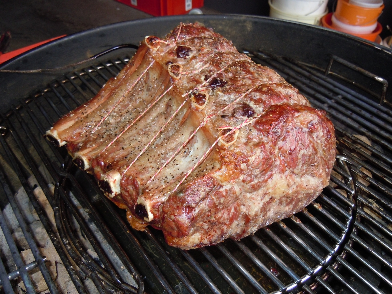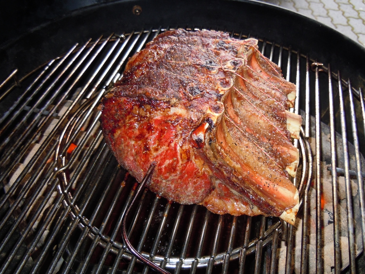 Ich habe mich heute mal an einer Hochrippe am Knochen versucht ... ca. 3,5 KG bestes US Beef aus Nebraska. aber seht selbst :
