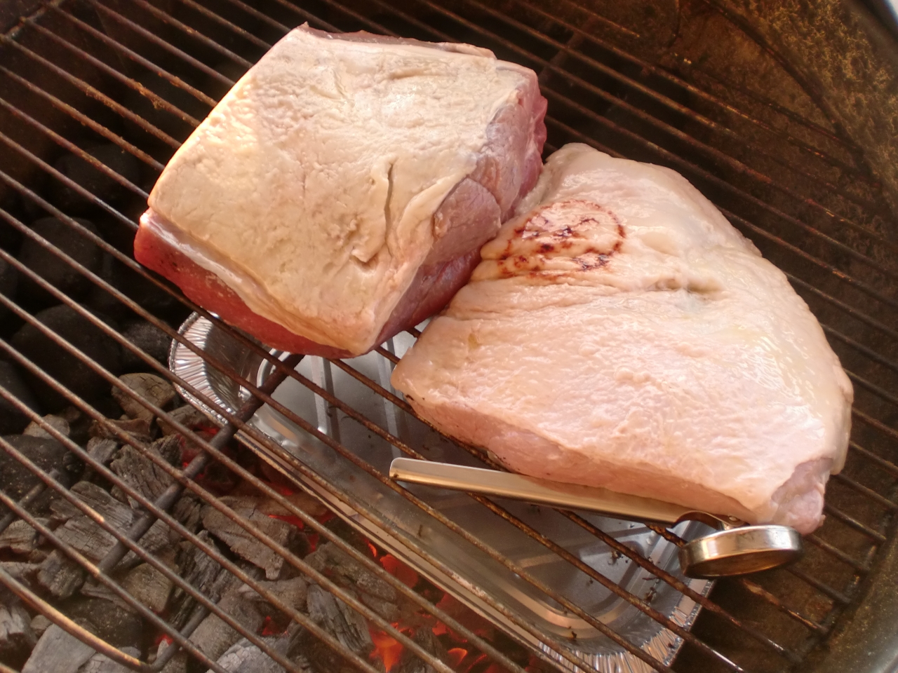so ca. 3 Std war das Teil auf dem Grill bei ca. 180 - 200 Grad