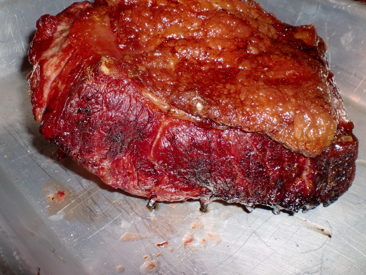 Babybeef sieht auf dem Bild schon saftiger aus ... obwohl mir die 140 Grad für diese Grilldauer etwas hoch erscheinen 90-110 wären bei 3 STD besser dann trocknet es nicht so aus) ? Das Roastbeef sieht sehr durch aus ... hast du am Anfang mit Woodchips geräuchert ?