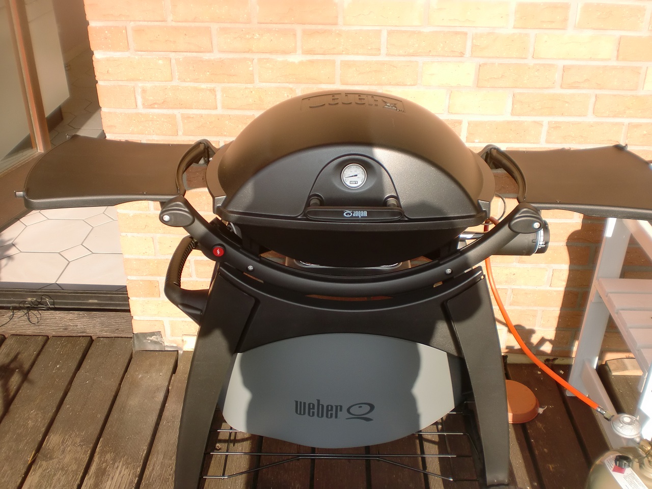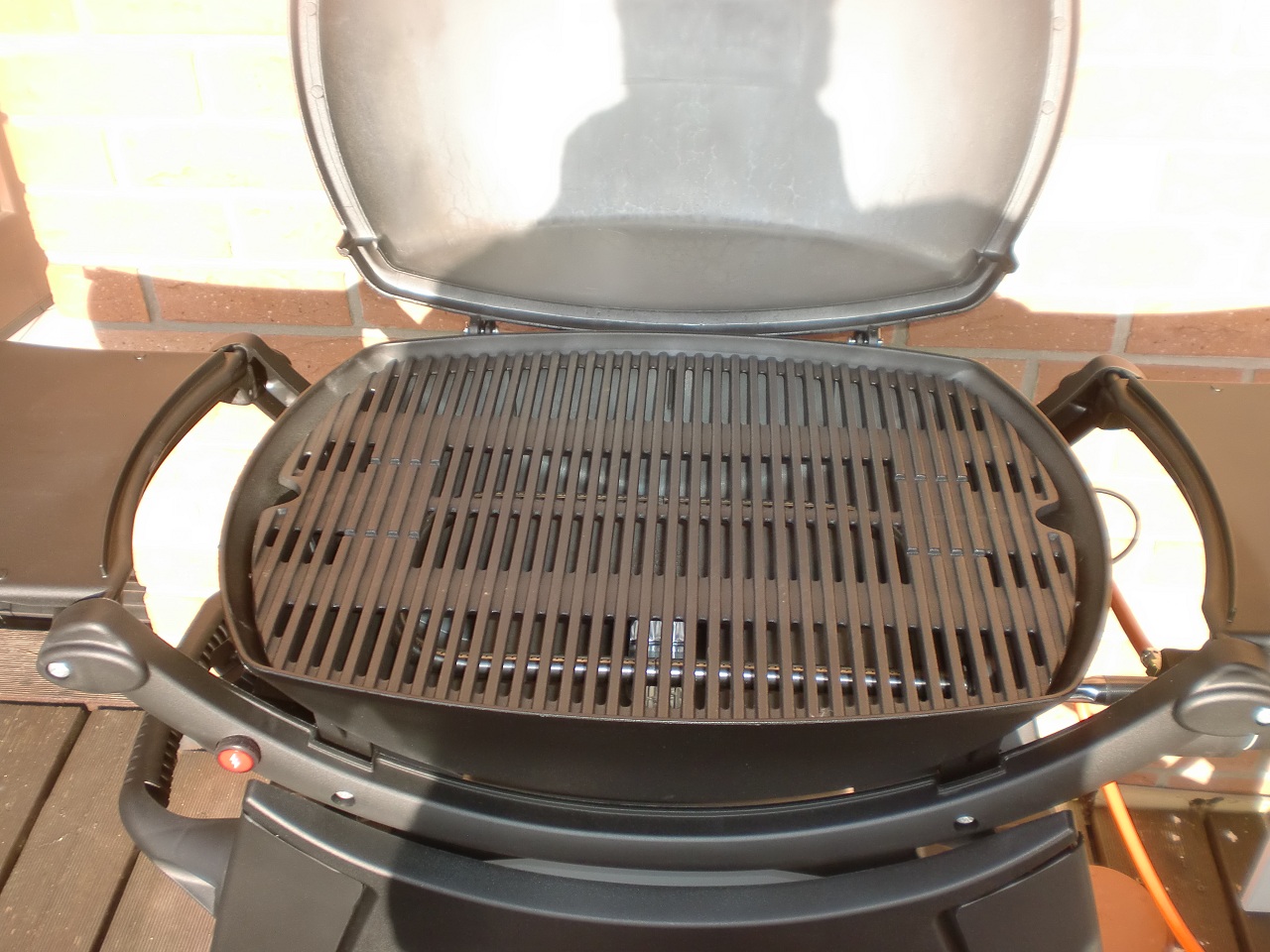 Der Trend geht zum Drittgrill! Nach nem 57er Holzkohle und dem Schaschlik-Blumenkasten habe ich mir heute noch einen Weber Q220 gegönnt.