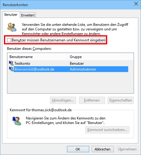 Um sich die Eingabe des Benutzerkontos beim Win-Start zu ersparen: