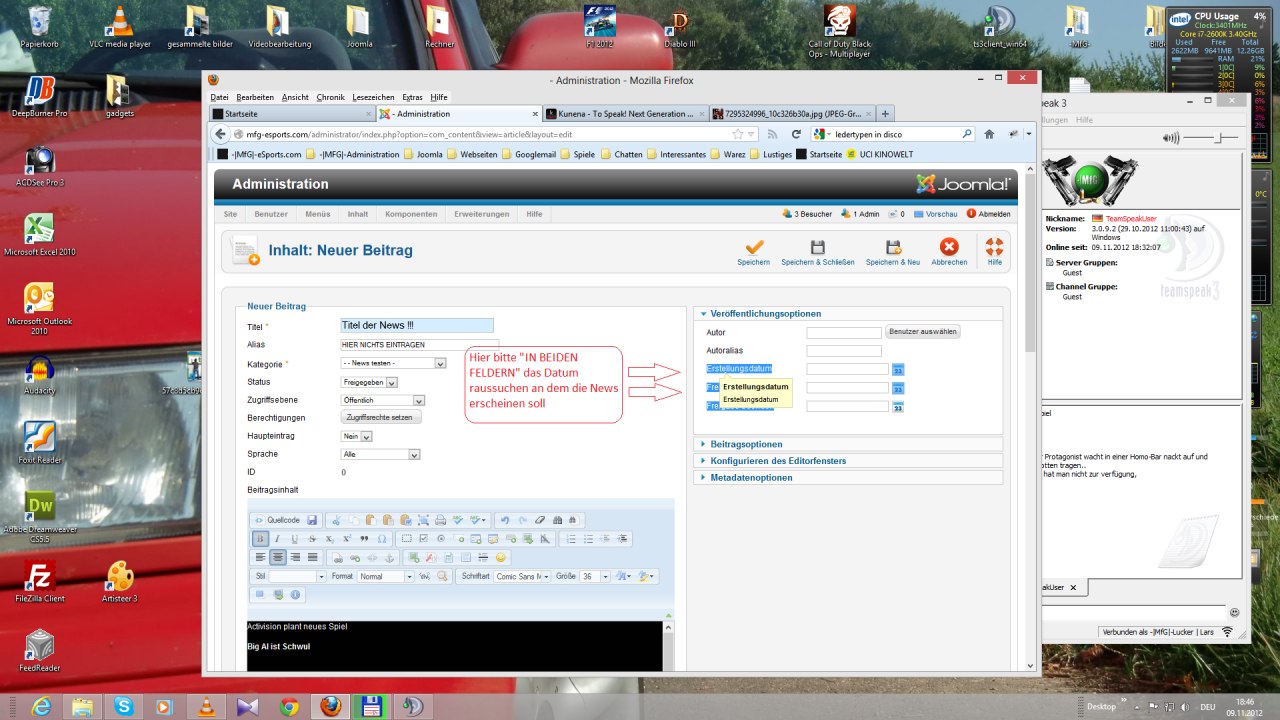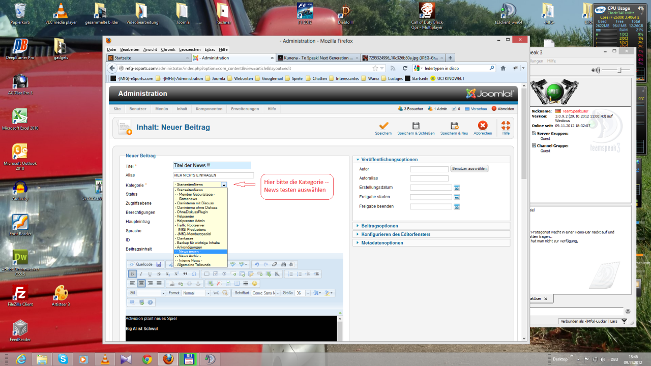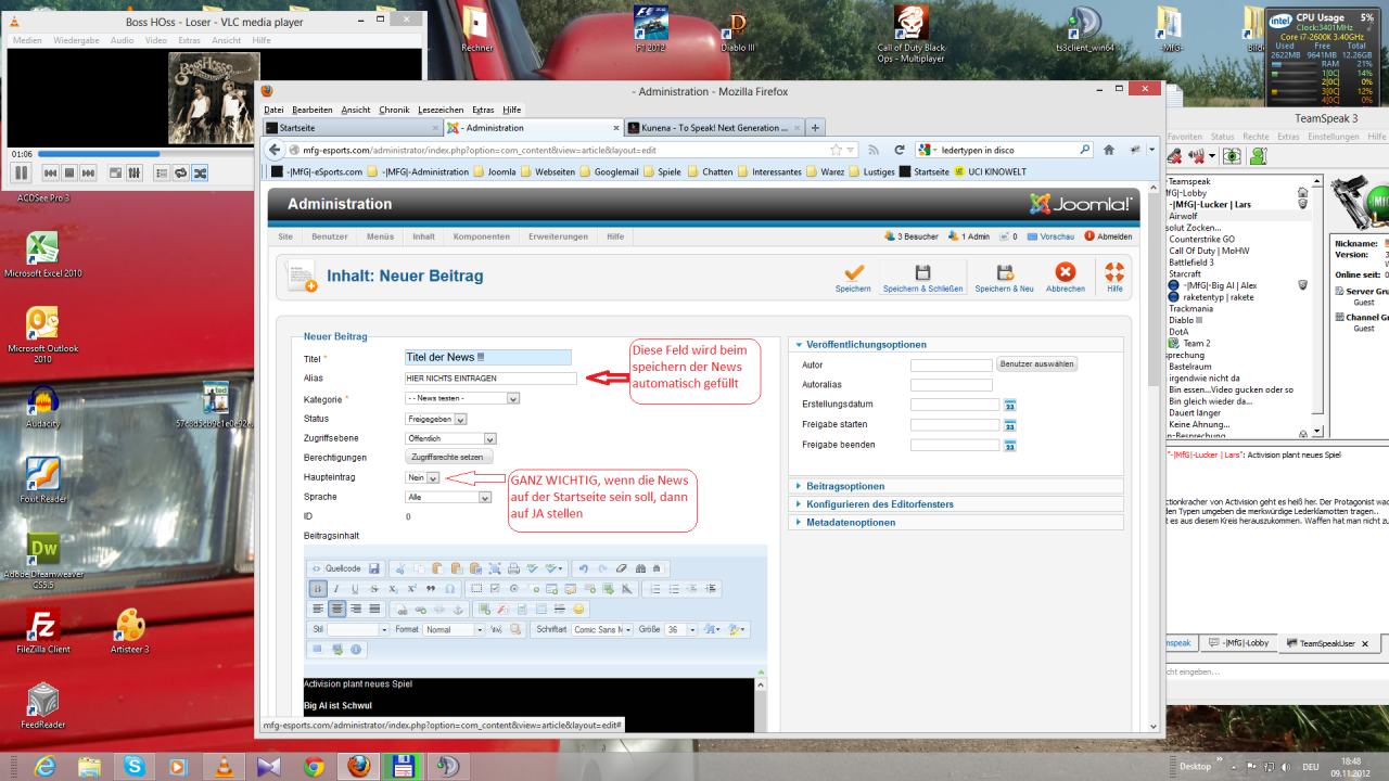 Also, da der ein oder andere vielleicht ein paar Probleme mit dem Verfassen von News hat hier eine kleine Anleitung dazu schön mit Bilderchens.